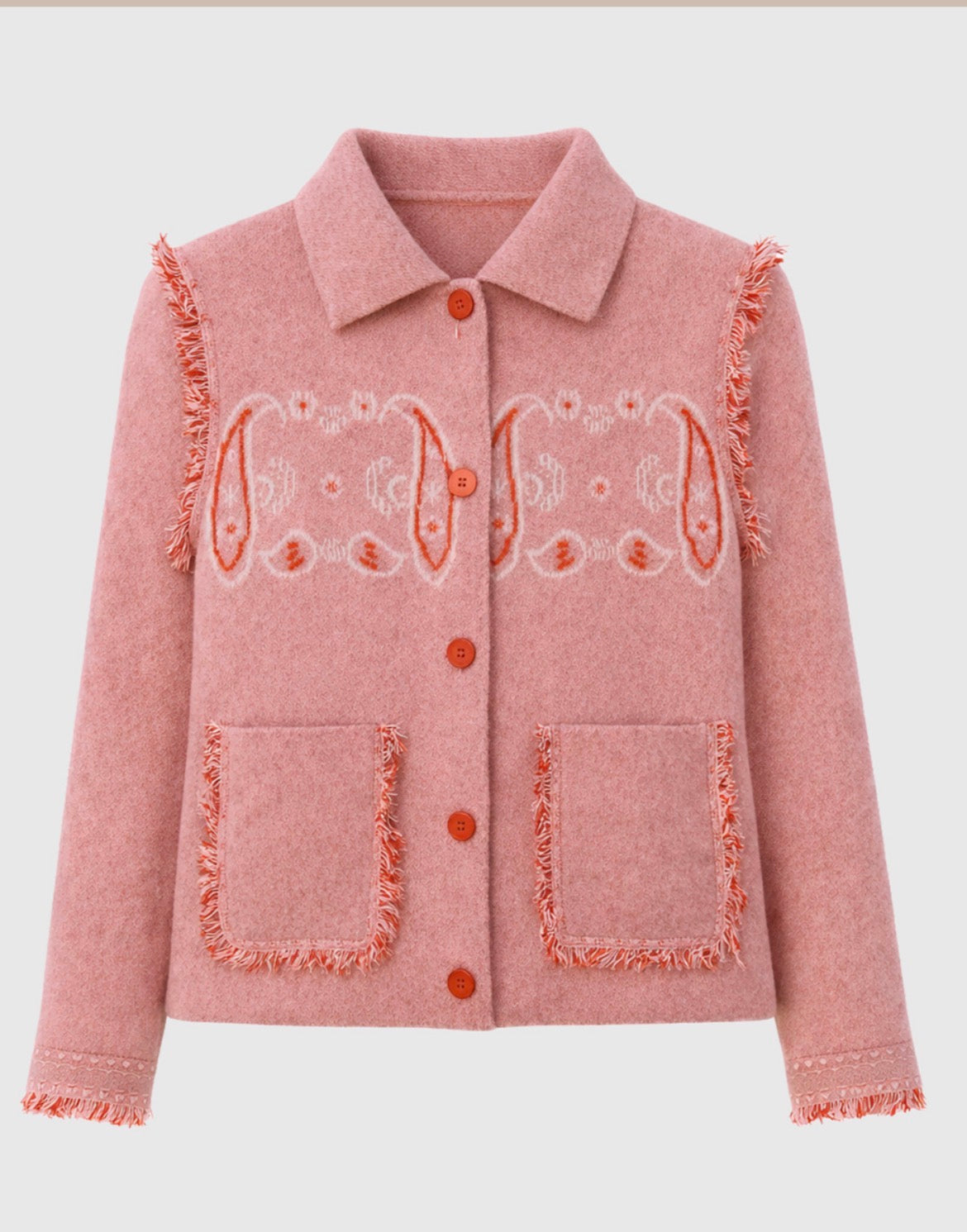 Pièce forte de la sélection Différence Concept Store, ce gilet en maille jacquard bandana mixe esprit western chic, détails frangés et coupe droite ultra moderne.