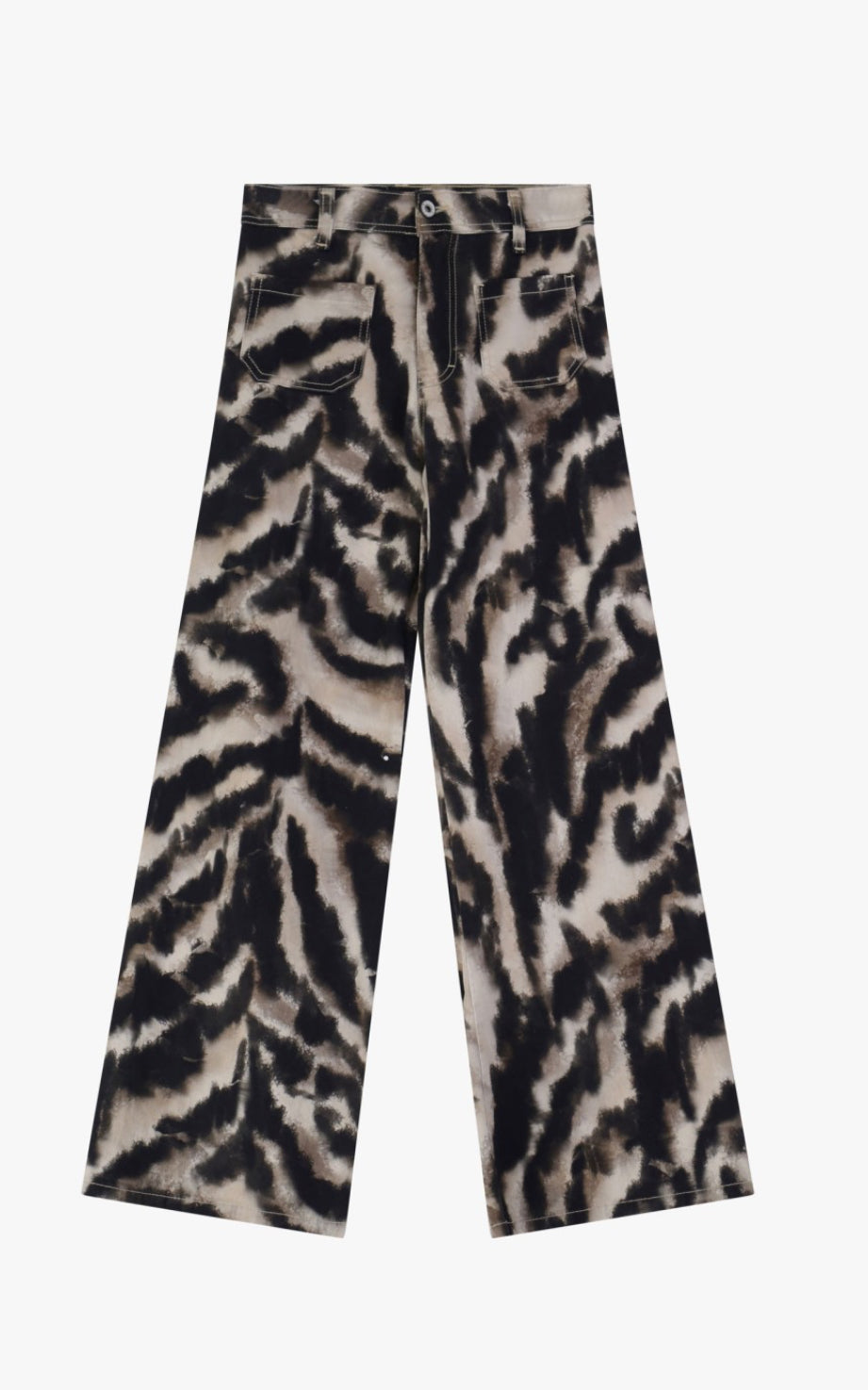Jeans flare à jambe évasée, dotés de poches plaquées devant et à l’arrière, avec un motif animalier distinctif. Ce modèle taille haute se ferme par un zip sous patte et est conçu dans un tissu stretch en coton imprimé beige et noir. Sa composition associe 98 % de coton à 2 % d’élasthanne, offrant confort et élasticité. Lavable en machine jusqu’à 30°C.