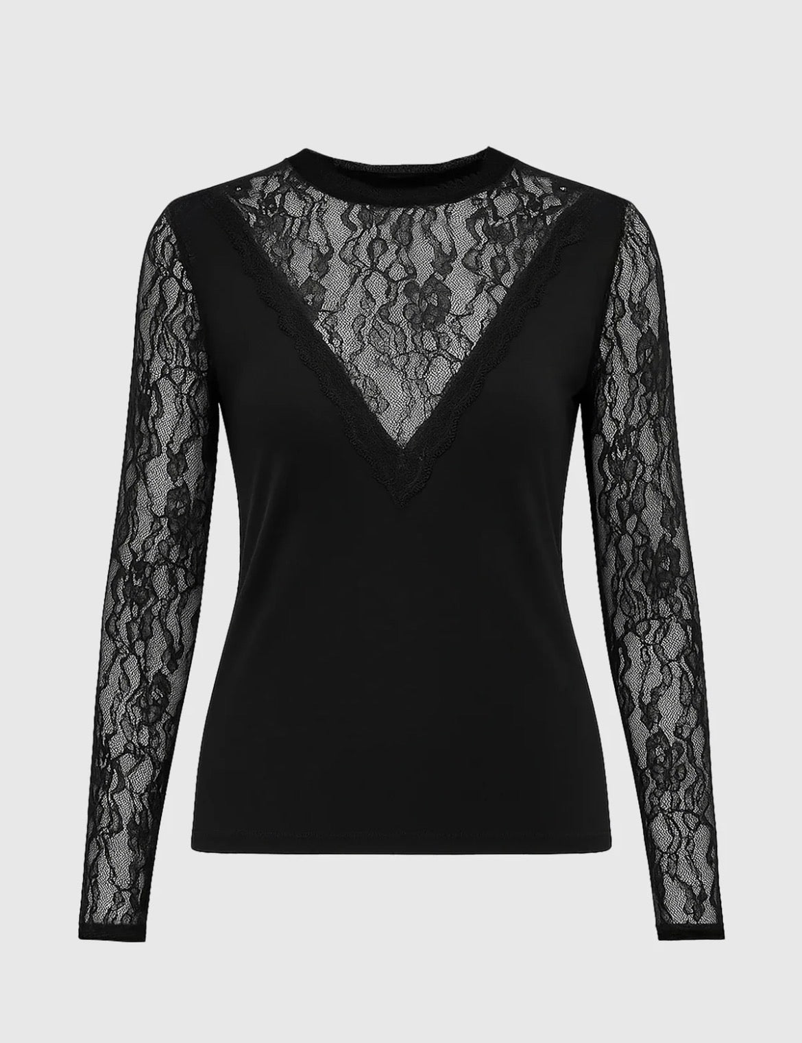 Tee-shirt Bi-Matière Dentelle & Maille – Féminité & Élégance Casual